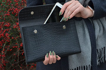 Колір шкіри для клатчу можна обрати в розділі "Матеріали"