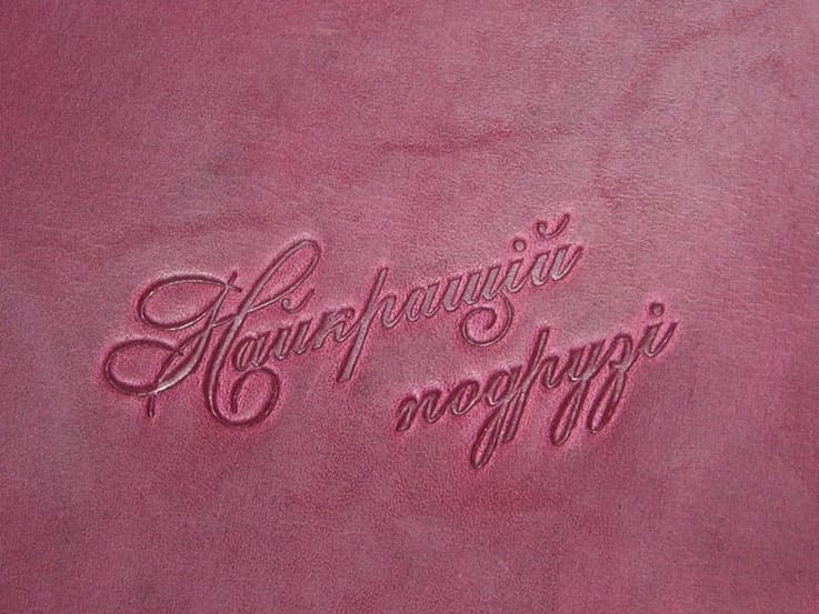 Тиснення логотипів, написів, імен, ініціалів та ін. під замовлення – від 300 грн. (залежно від розміру та складності кліше)