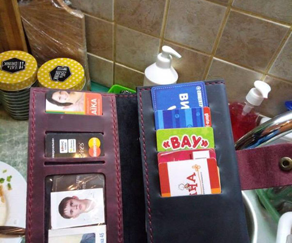 "Робив замовлення на два гаманці, для себе і для дружини, не одночасно. Своїм користуюсь вже дуже давно, стан гаманця як і в перший день. Оце зробив подарунок і для дружини. Справжню якість можна оцінити лише взявши гаманець до рук, жодне фото цього не передасть. Дуже вдячний Сергію за його роботу, та індивідуальний підхід до клієнта. Натхнення Вам, нових ідей та вдячних клієнтів."