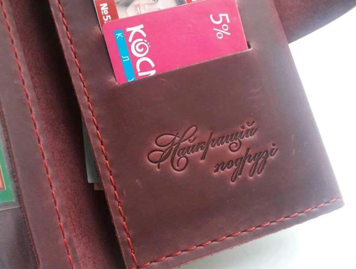 "Сергію, дякую за чудовий гаманець ручної роботи! Дуже доречний, якісний і стильний подарунок мені під ялиночку! Замовлятиму ще )))"