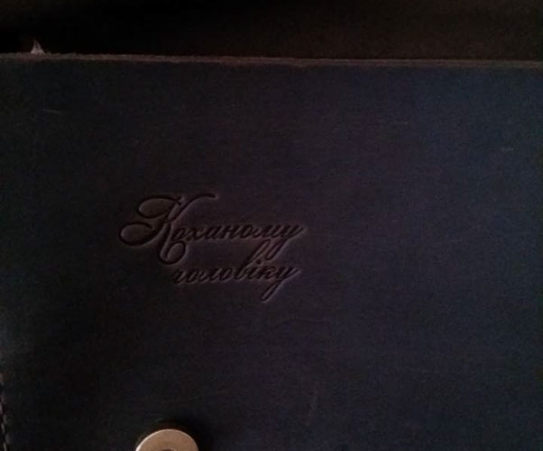 "Замовляла сумку на річницю весілля. Сумка класна, стильна, зроблена з якісної шкіри. Замовлення отримала швидко. Окреме дякую за пораду у надписі "Коханому чоловіку". Чоловік задоволений. Буду замовляти ще та радити друзям та знайомим"