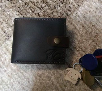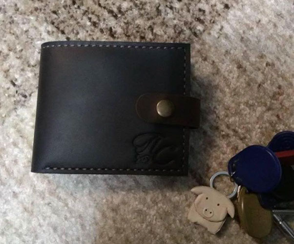 "Замовляла у Сергія гаманець "Мій" на подарунок чоловіку на Новий рік. Все дуже сподобалося!!! Якість На найвищому рівні! І подаруночок у вигляді брелка свинки дуже сподобався! . Буду обов'язково звертатися ще!"