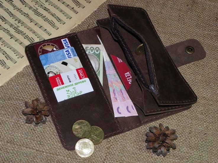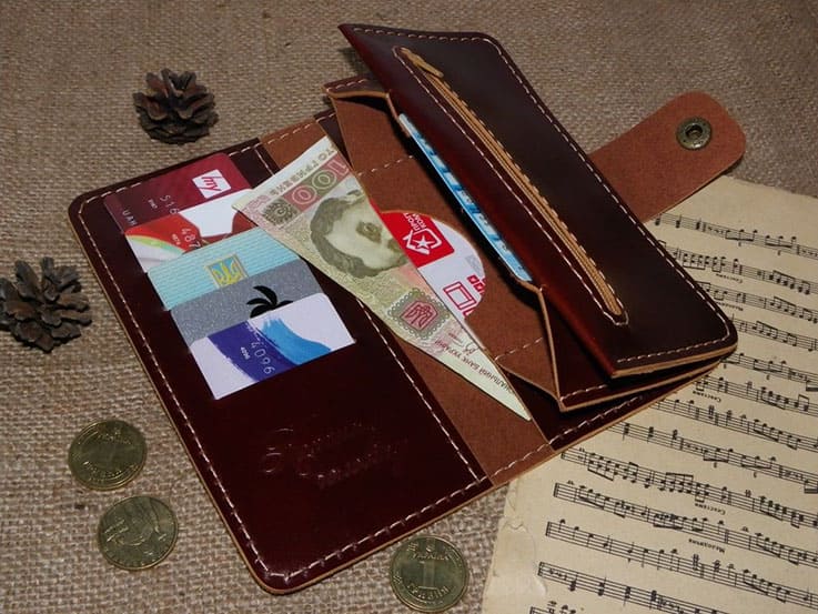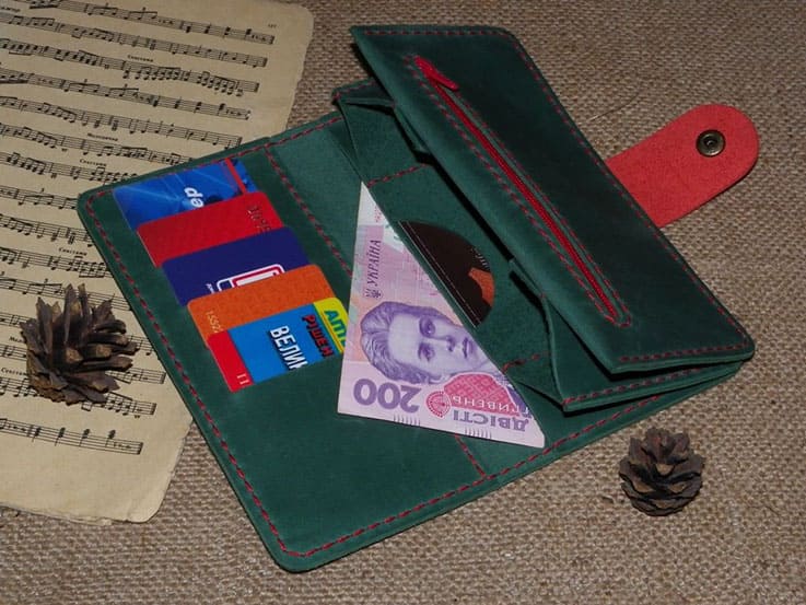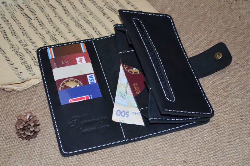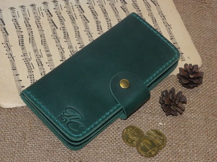 Колір шкіри для гаманця можна обрати в розділі "Матеріали"