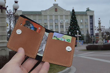 Колір шкіри для гаманця можна обрати в розділі "Матеріали"